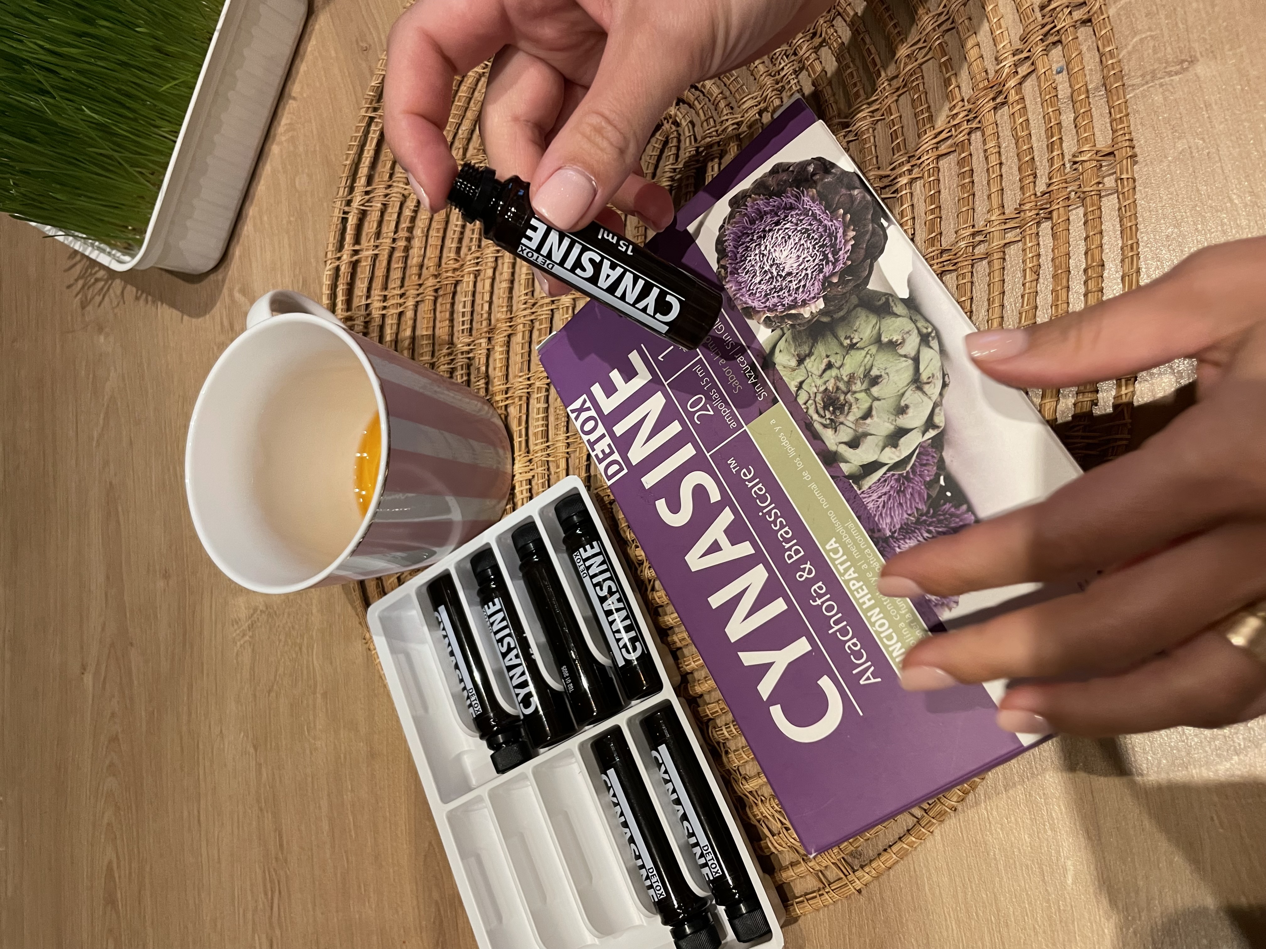 CYNASINE DETOX: Spożywać 1 ampułkę dziennie, najlepiej przed śniadaniem. Można rozcieńczyć wodą lub sokiem owocowym. Ampułkę można również rozcieńczyć w półtora litra wody i pić w ciągu dnia.
