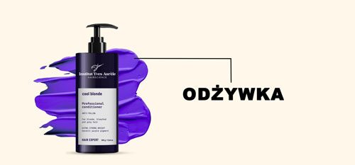 Odżywka Cool Blonde (500 ml): AQUA (WATER), CETEARYL ALCOHOL, METHOXY PEG/PPG-7/3 AMINOPROPYL DIMETHICONE, HYDROLYZED KERATIN, PROPYLENE GLYCOL, PALMITAMIDOPROPYLTRIMONIUM CHLORIDE, PANTHENOL, GLYCERIN, PARFUM, CITRIC ACID, PHENOXYETHANOL, POTASSIUM SORBATE, SODIUM BENZOATE, METHYLCHLOROISOTHIAZOLINONE, METHYLISOTHIAZOLINONE, METHYLPARABEN, ETHYLPARABEN, PROPYLPARABEN, BUTYLPARABEN, LINALOOL, CI 60730.