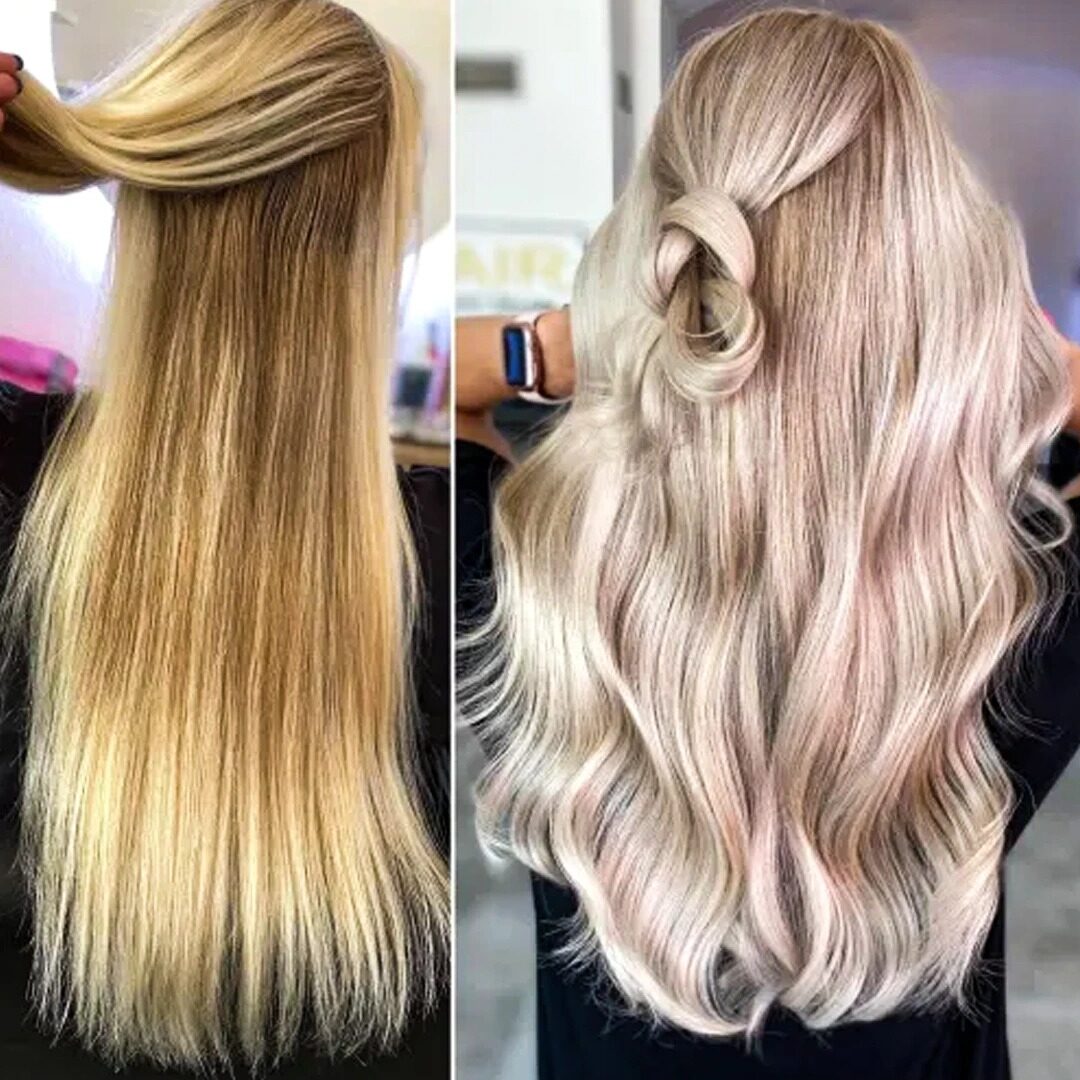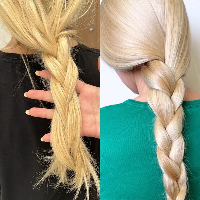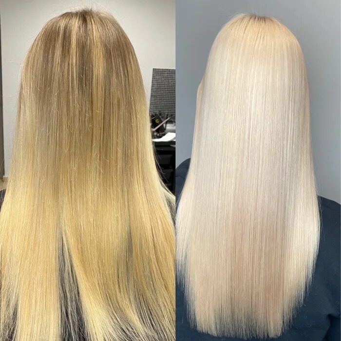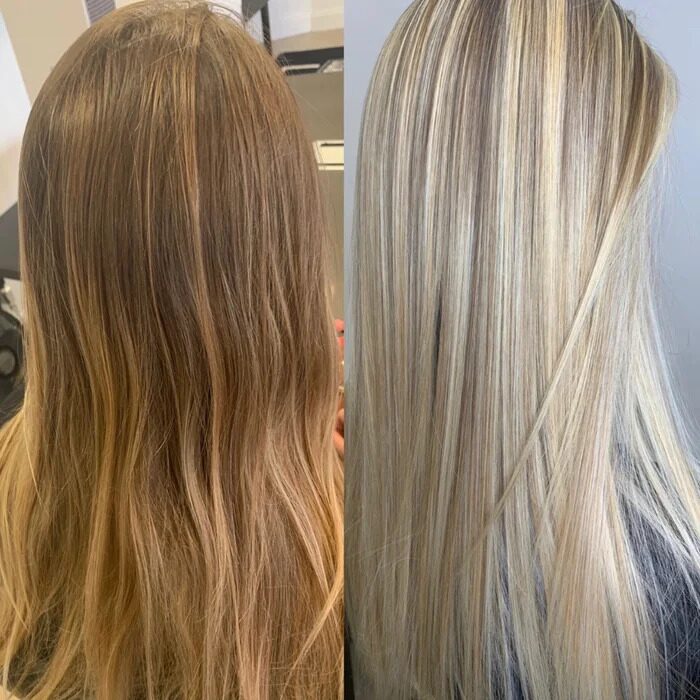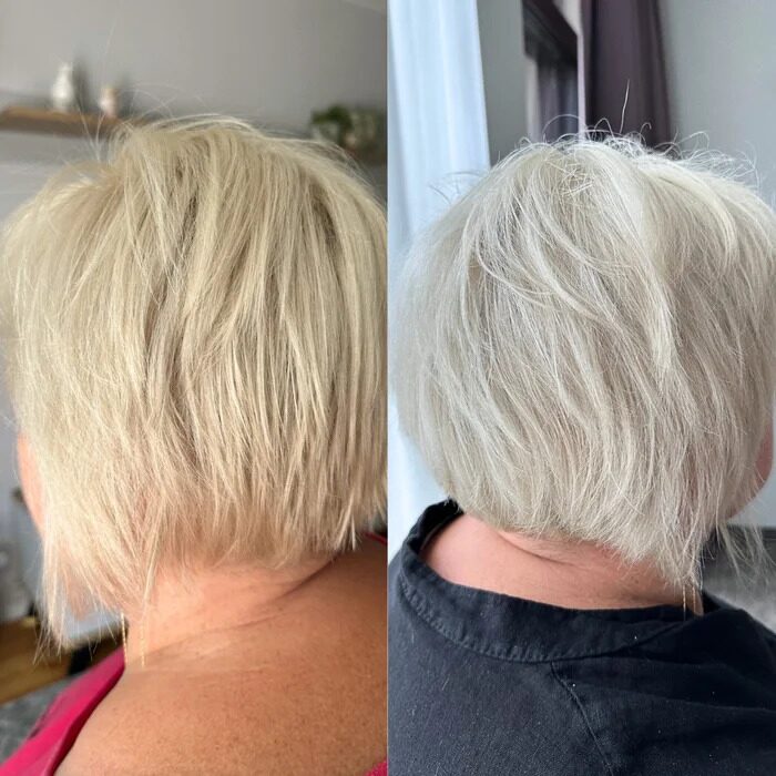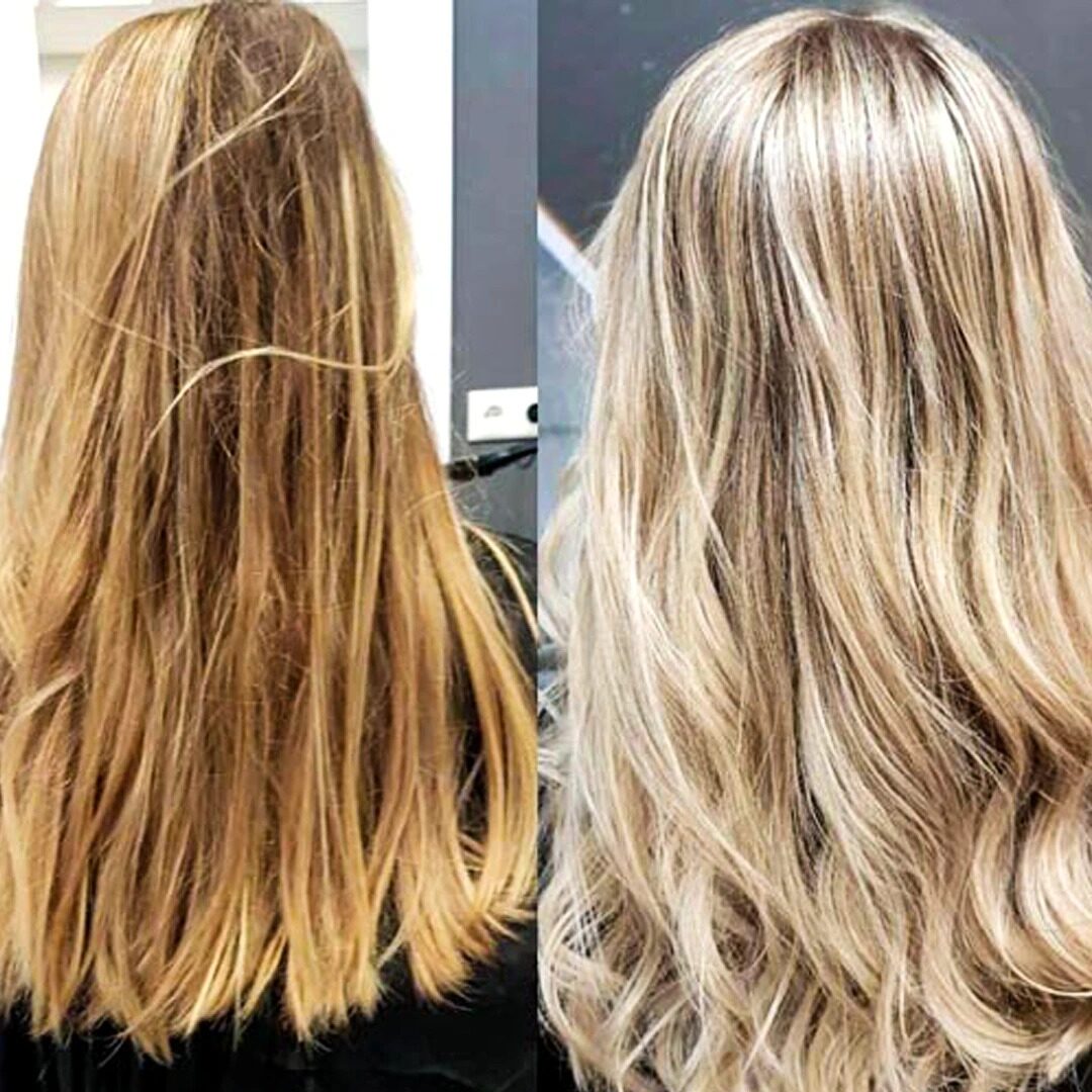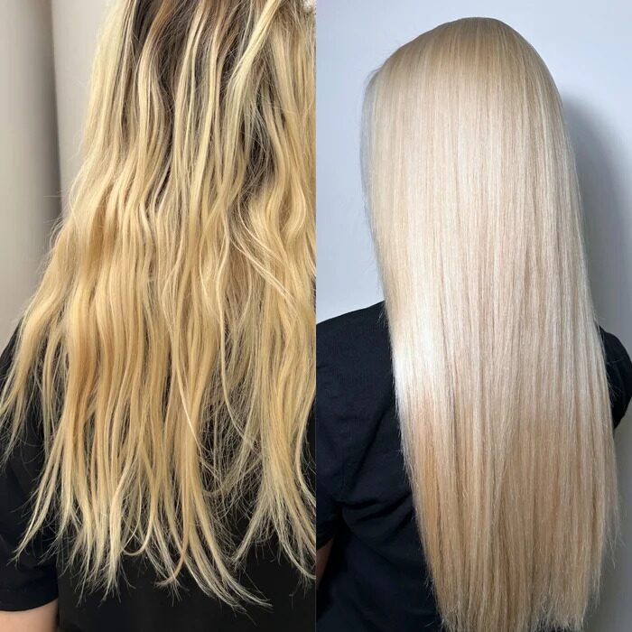 Rewelacja! Urodę włosów po tym zestawie trudno opisać – chłodny, lodowy blond i absolutny blask.